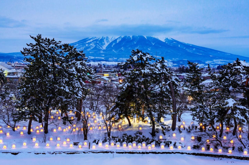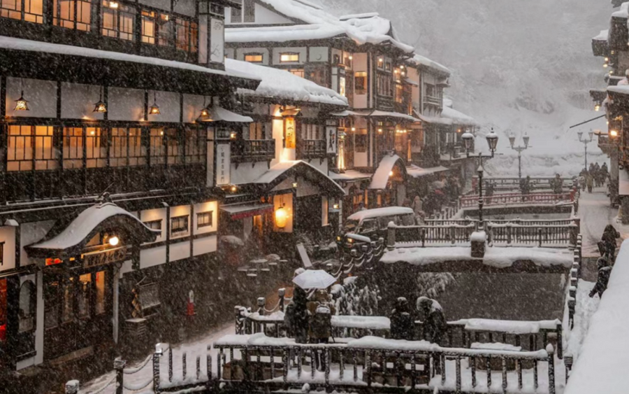 A hushed mountain setting — falling snow, warm onsen steam, and evenings wrapped in stillness. Yamagata is winter at its most intimate, where sound fades and the season fully takes over.