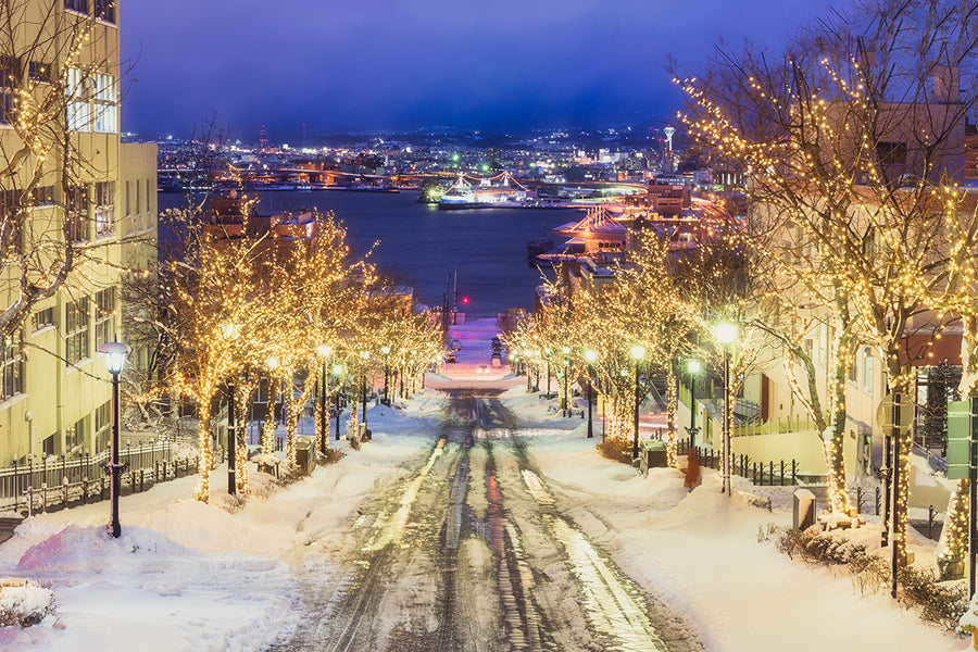 A port city shaped by sea and sky — open views, cold air, and winter light reflecting off the bay. Hakodate feels spacious and clear, offering release after the weight of deep snow country.